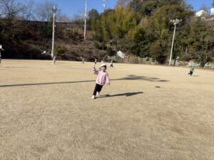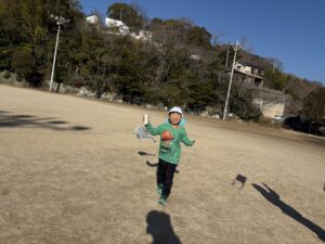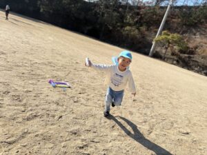 一緒にグラウンドへ凧揚げに